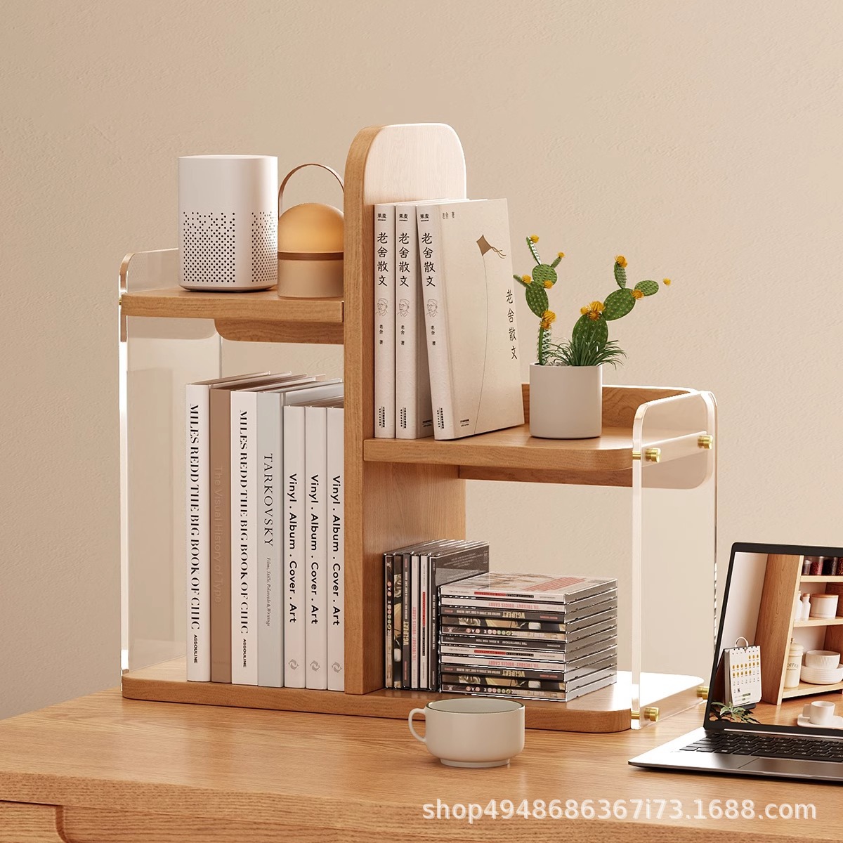 実木の小さい本棚のデスクトップの物置棚の簡易な子供の机の多層の本棚はおもちゃの寮の良い物の本棚を収納します。