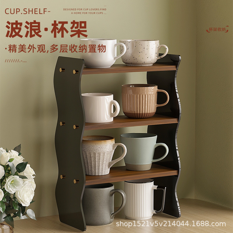 波の形の4階のコップの棚は物を置く棚のデスクトップの手作りのおもちゃの陳列棚を置きます。
