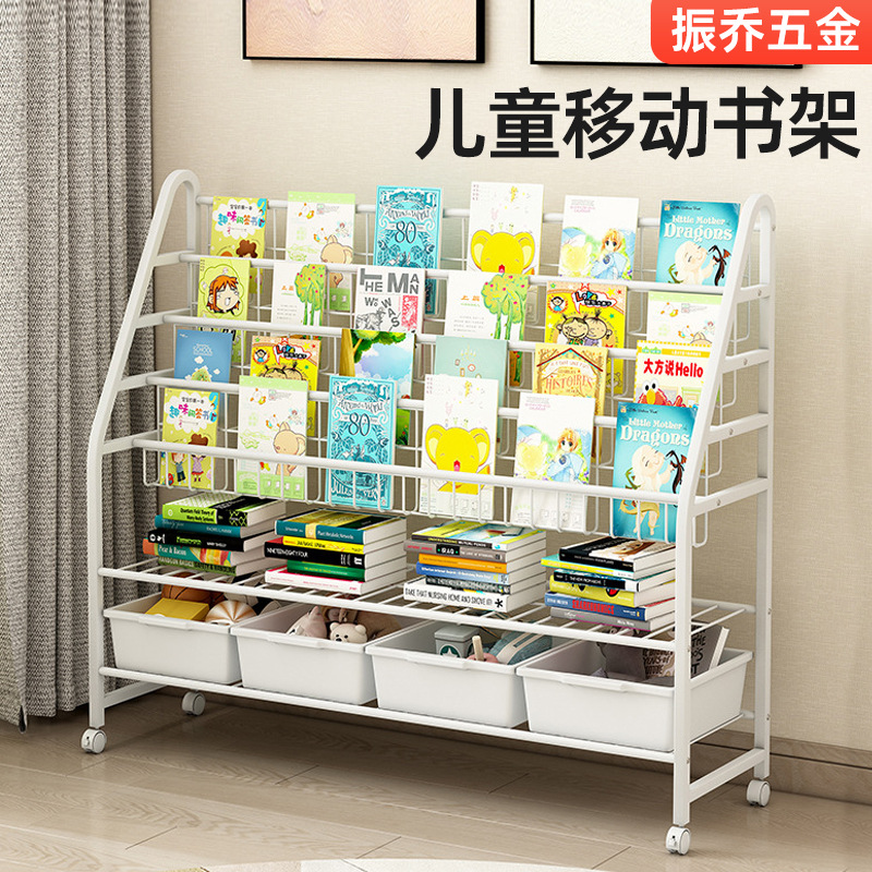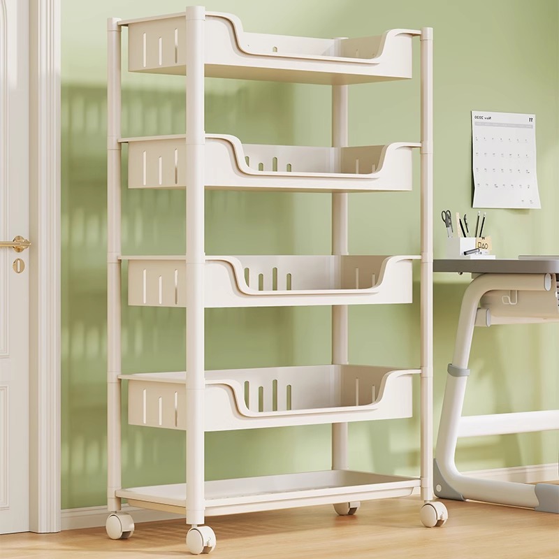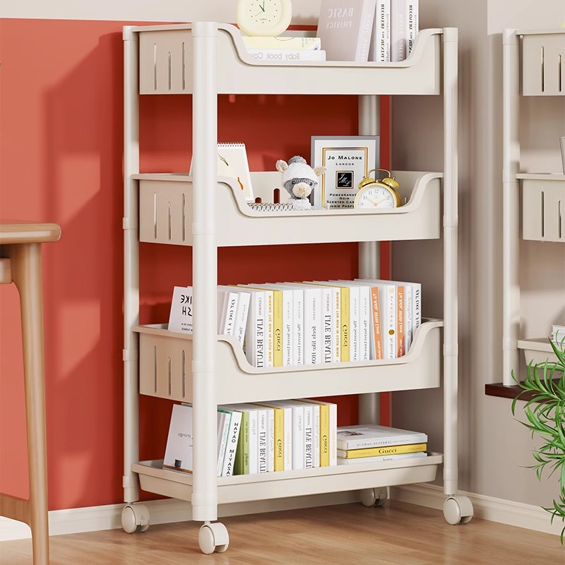本棚の物置棚が床に落ちた家庭用の簡易多層移動子供玩具収納読書プーリー付きカート本棚