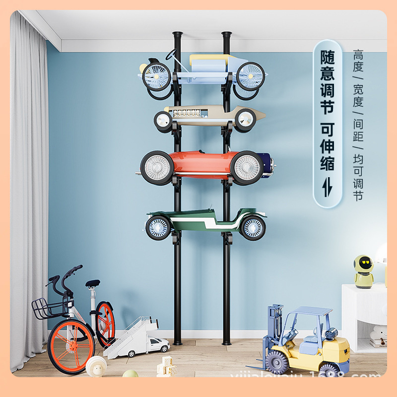 ✅【小紅本ホットプッシュ】天に立って穴を開けない子供車の棚の多層スケートボードの自転車収納
