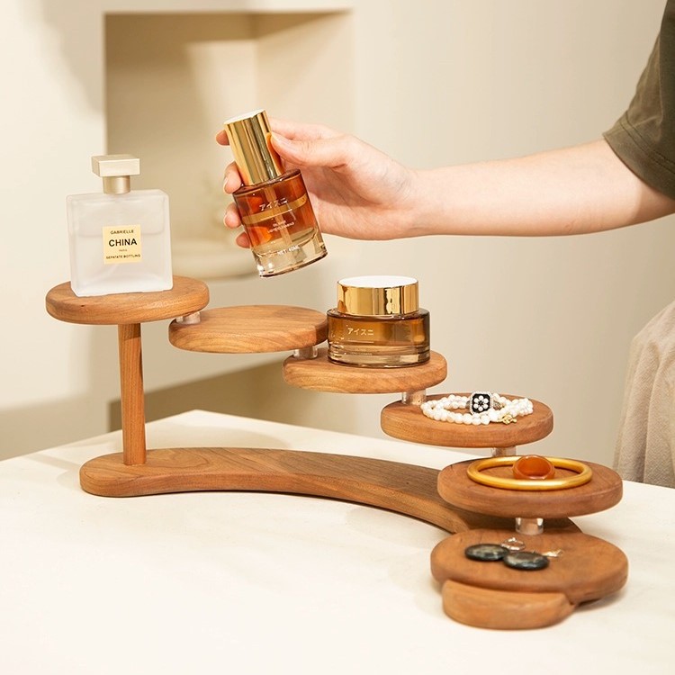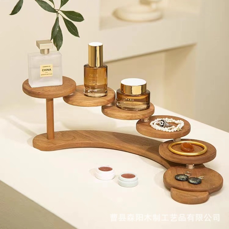 Nian 手作り多層ラウンドディスプレイラック無垢材デスクトップ収納ラックブラインドボックス収納ラック香水とスキンケア製品ディスプレイ Nian