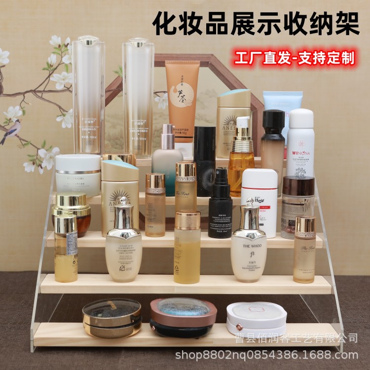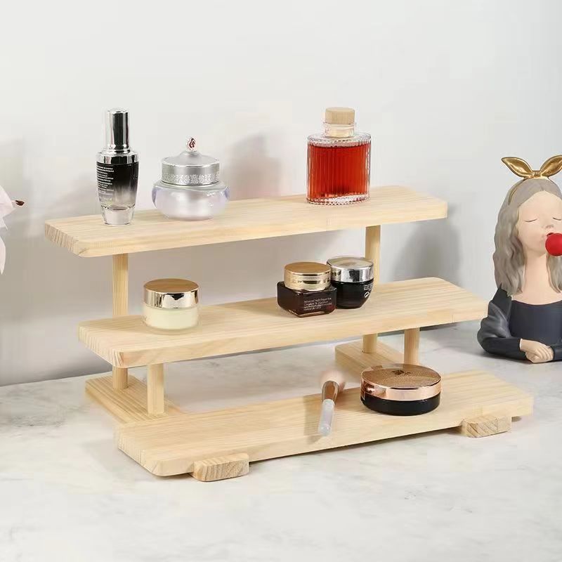 シンプルな木製デスクトップ棚多肉手作り化粧品多層展示棚香水スキンケア品陳列棚