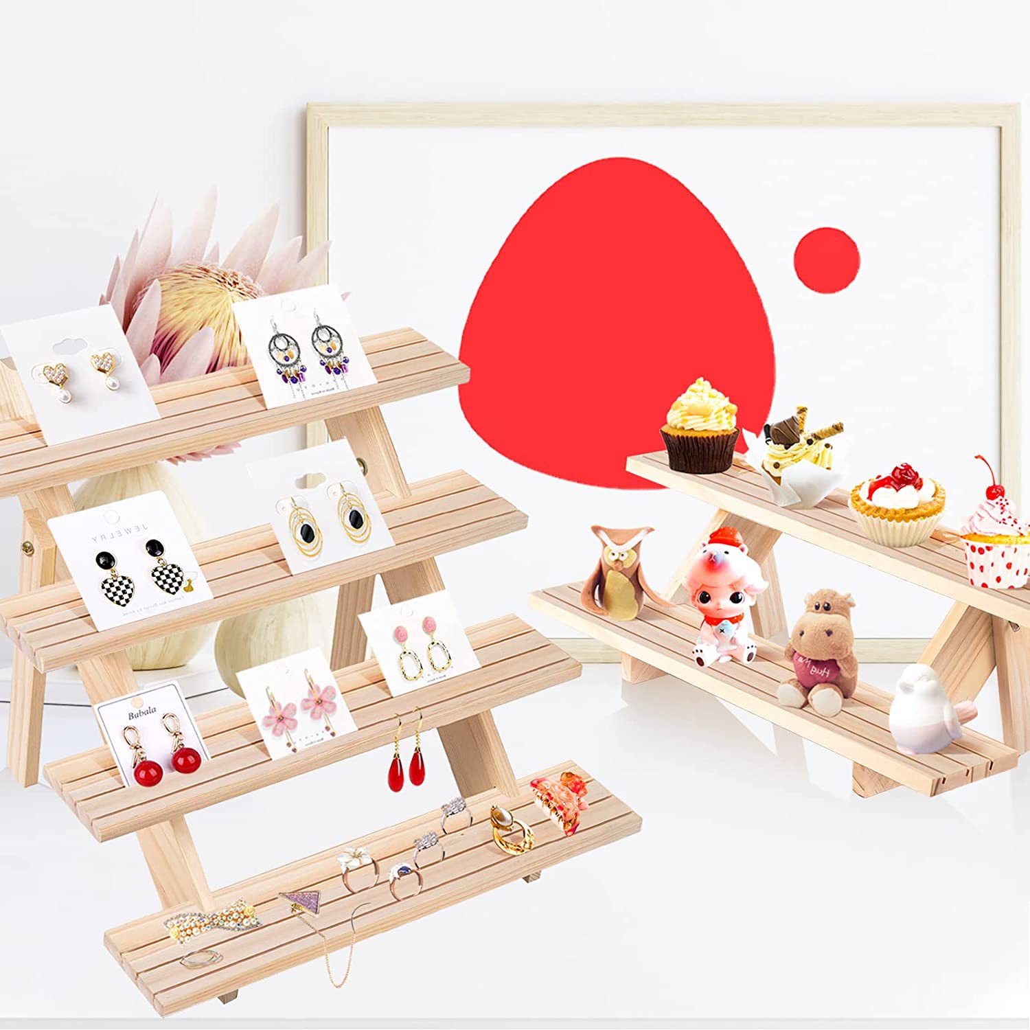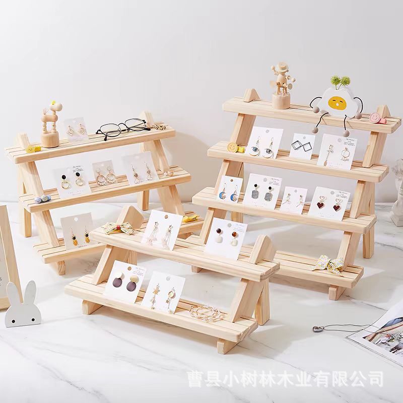 木製ジュエリーディスプレイラック無垢材ジュエリー収納ラッククリエイティブデスクトップ多層はしご手作りディスプレイラック