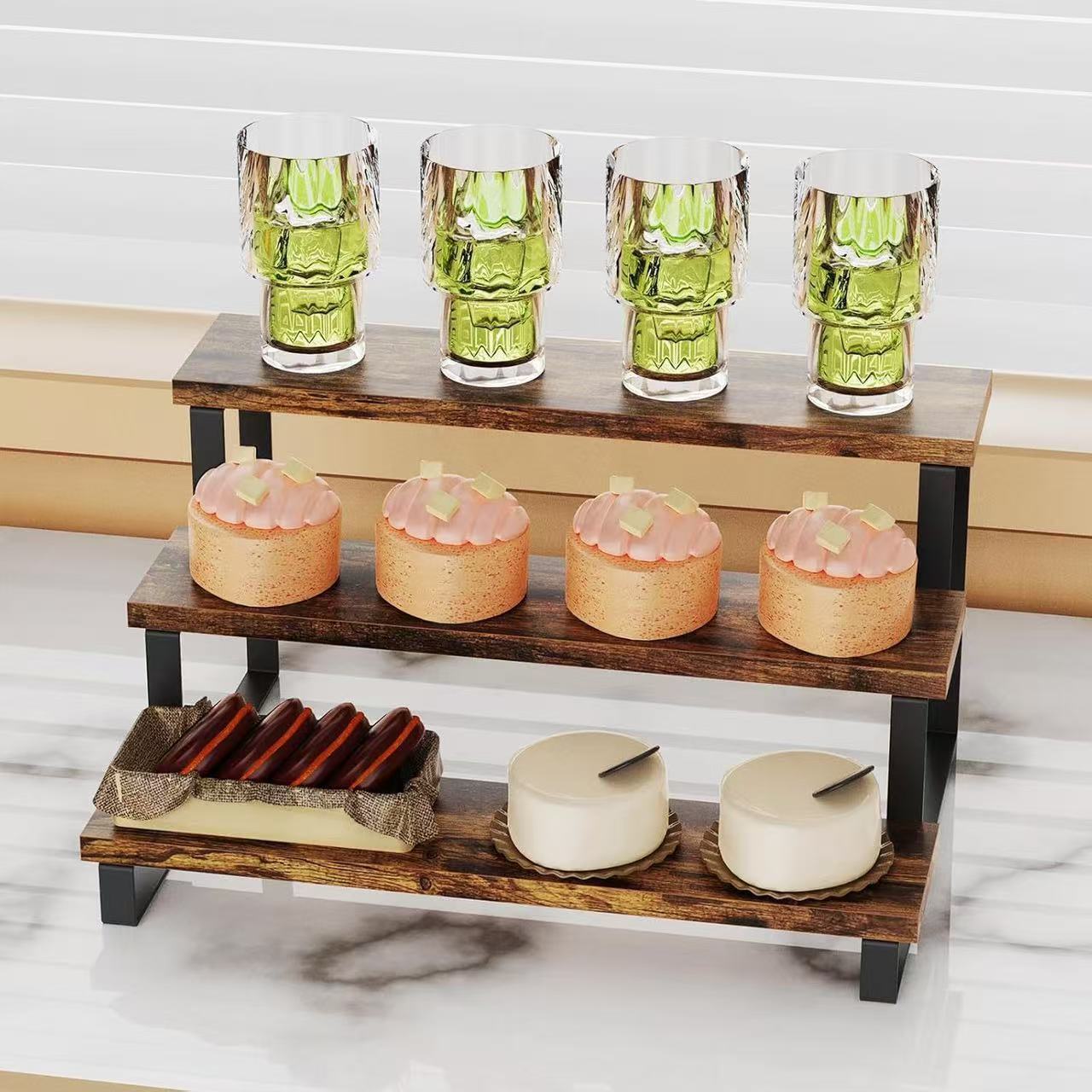 無垢材の段付きディスプレイラック、手作りの整理収納ラック、キッチン多層木製スパイスラック、ケーキディスプレイラック