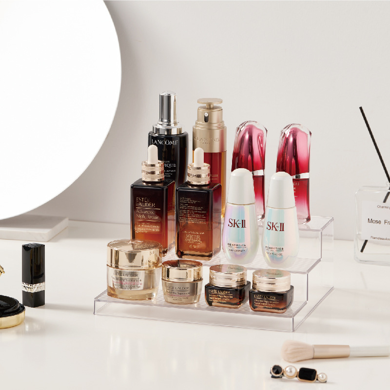 手作り展示棚三層透明階段棚デスクトップスキンケア調味料収納棚