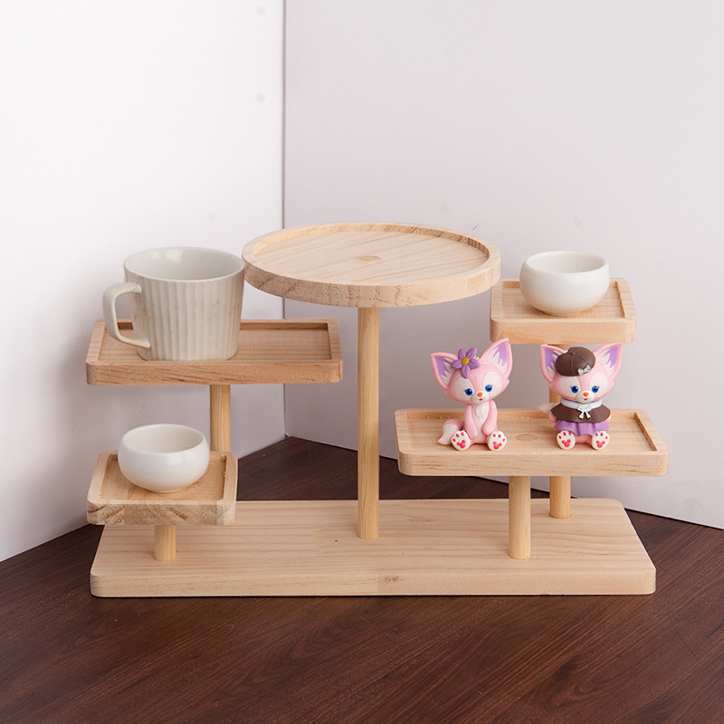 多層木製ラック原木色収納整理棚泡マット人形展示棚手作り展示棚