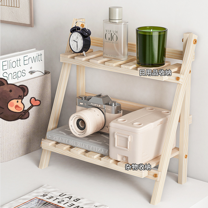 パイン材多層収納ラックテーブル化粧品ディスプレイラック無垢材ステップレゴ人形ベース収納ラック