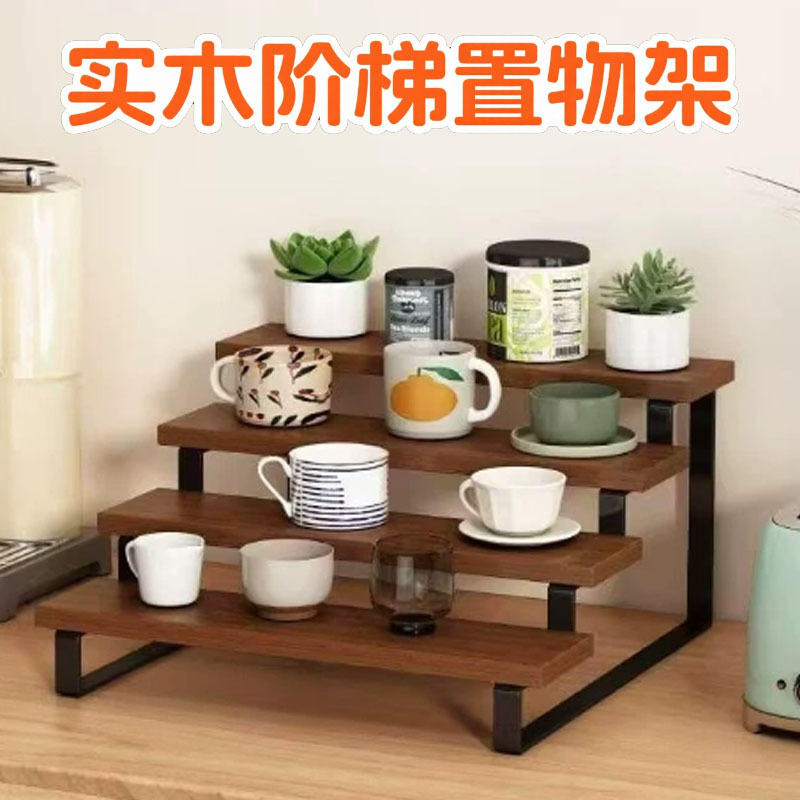 阶梯式展示架木质桌面多层置物架香水咖啡杯收纳架盲盒手办陈列架