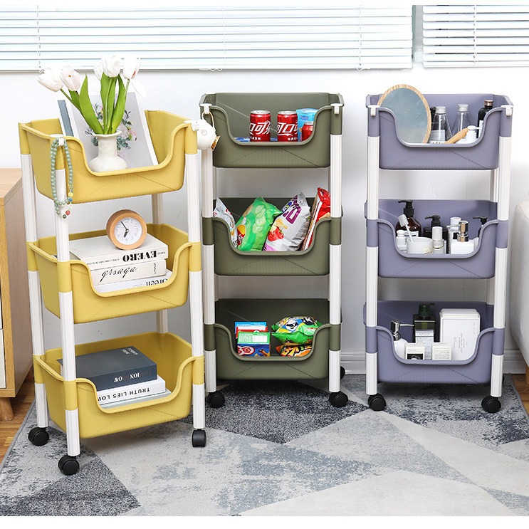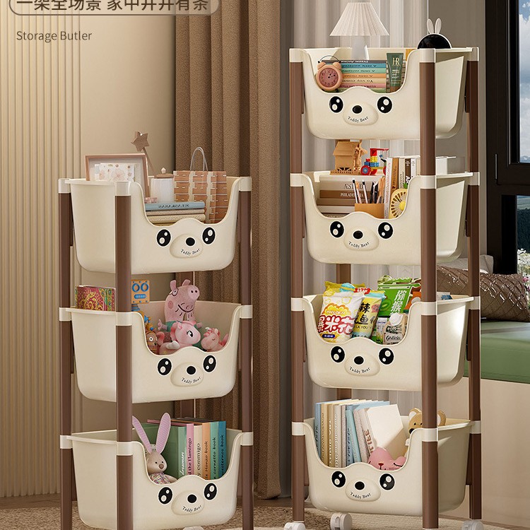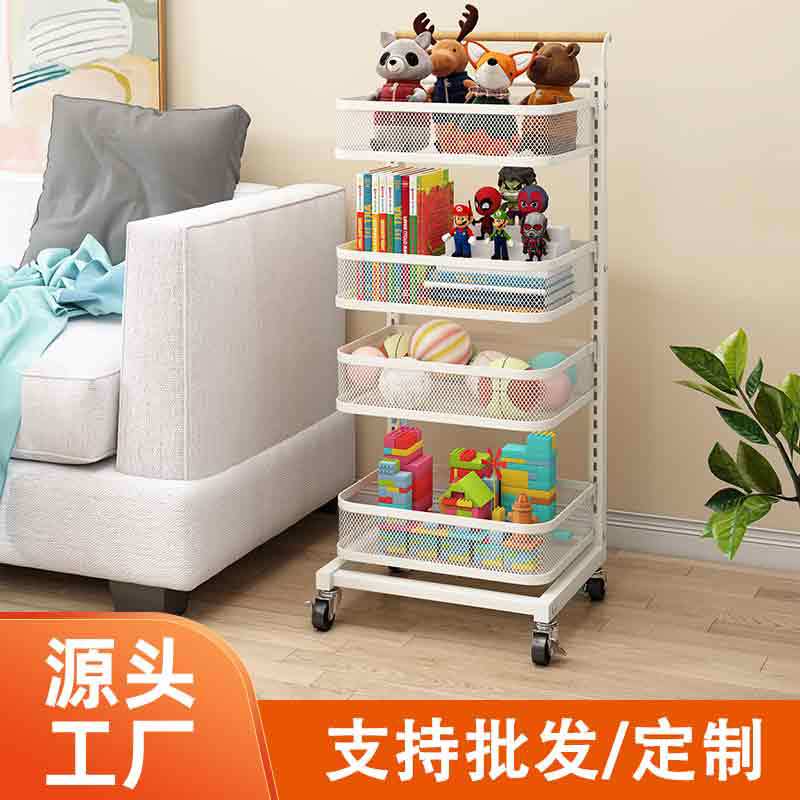 家庭用リビングルーム床置きスナック玩具多層収納ラック多機能収納ラック移動式トロリー収納ラック