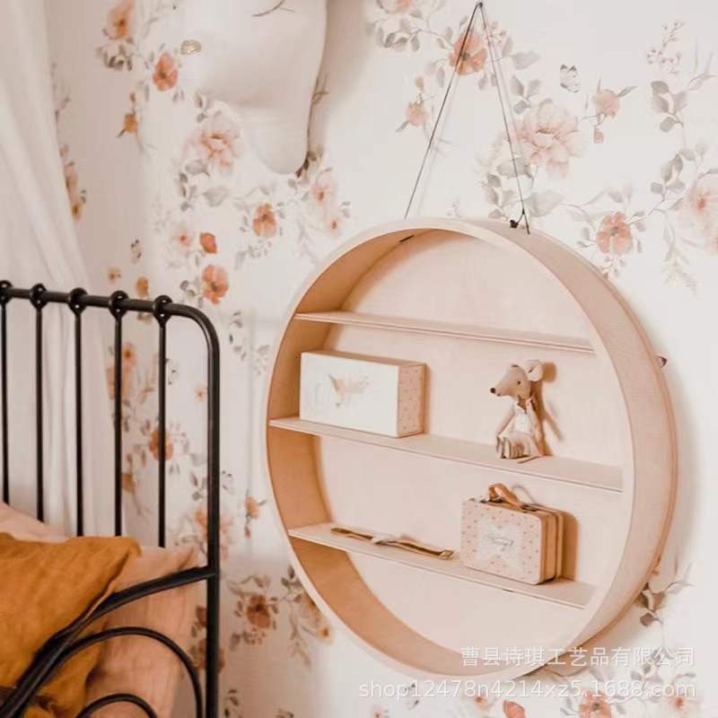 円形壁掛け木製棚多層収納棚子供部屋壁掛け背景壁飾り玩具整理