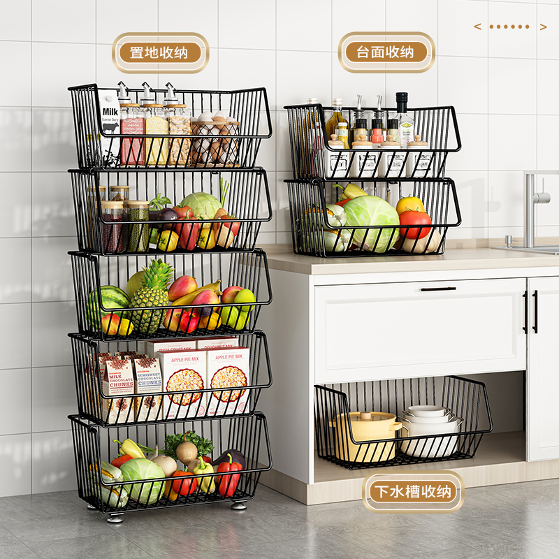 多層キッチン棚家庭用移動収納棚黒色穴なし多機能スナック玩具収納バスケット
