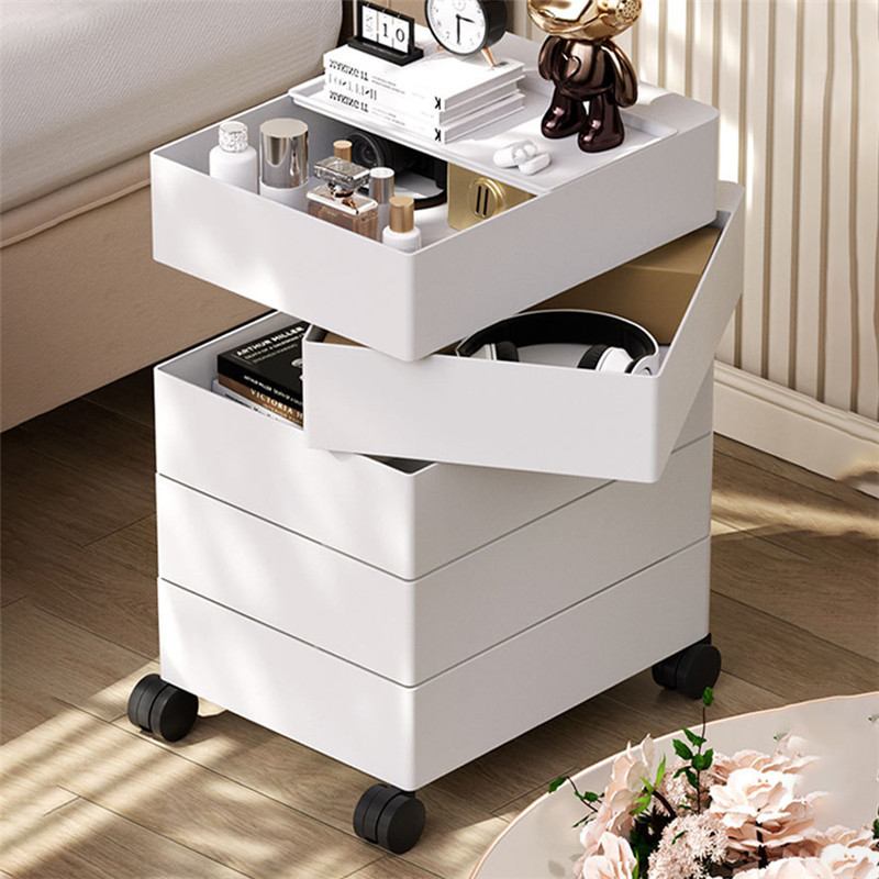 移動可能な多層回転棚の新型寝室のベッドの頭の棚のテーブルのソファーのサイドのいくつかのお菓子の引き出しの収納棚