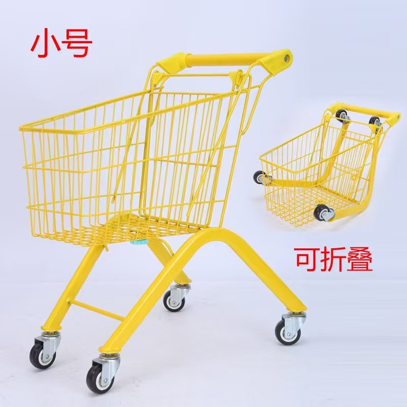 卸売りスーパーの子供が買い物をして折り畳み車で野菜を買います。