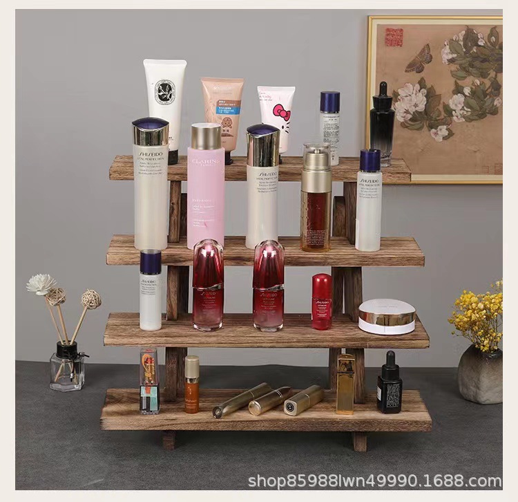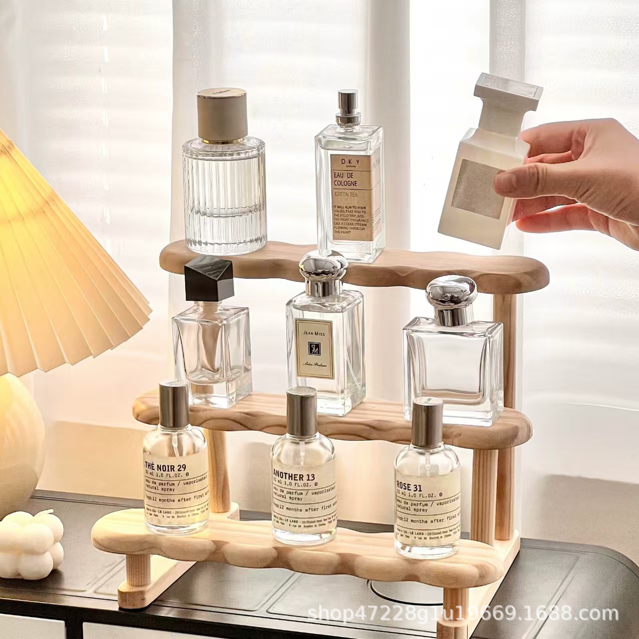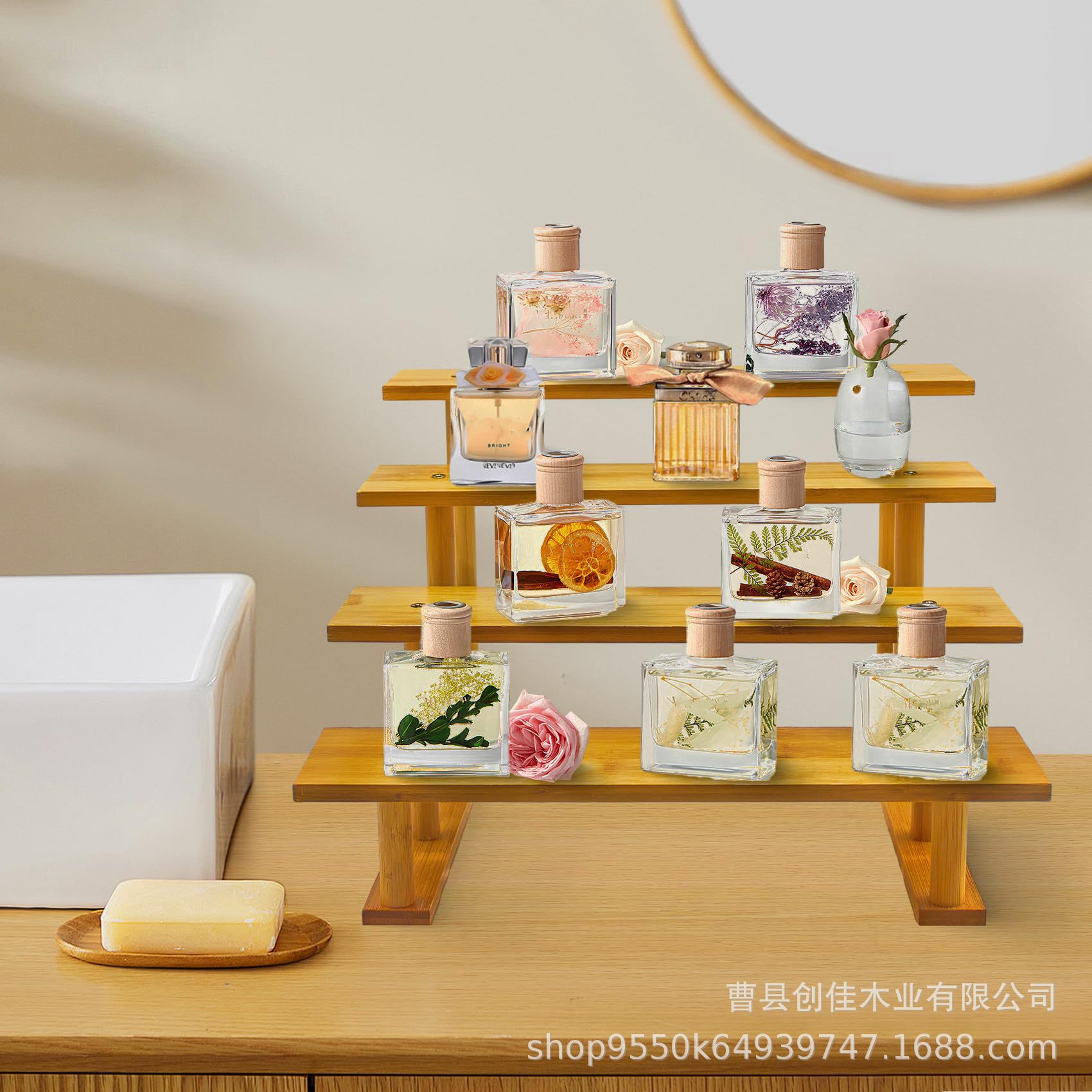シンプルな木製香水精油収納棚デスクトップ多層手作り人形棚紙コップケーキ収納棚