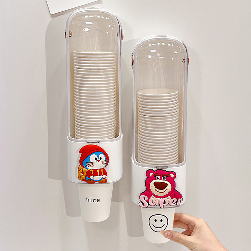 使い捨てカップカップホルダー壁掛けかわいい漫画イチゴクマ家庭用パンチフリーペーパーカップ収納ラック