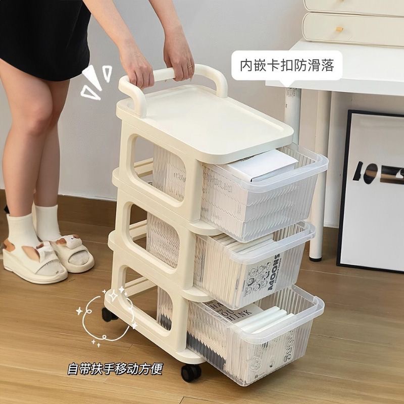 トロリースナック引き出し型収納ラック多層収納床置きモバイルホームリビングルームおもちゃ収納ラッククリーム