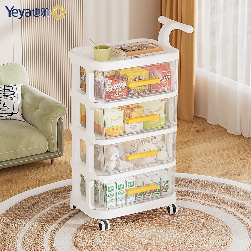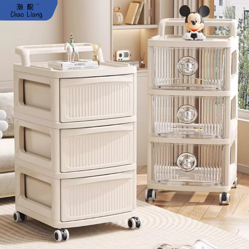トロリー床置き多層収納ラック引き出し式おもちゃスナック収納クリームスタイルリビングルームベッドルームモバイルシェルフ