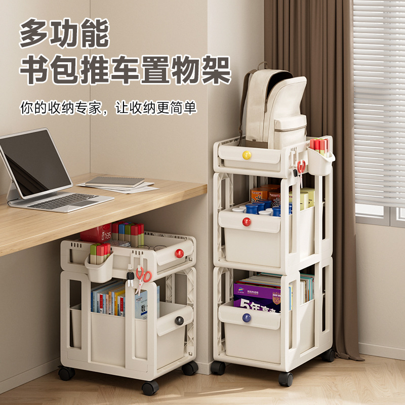 滑車付きランドセル収納ラック、可動ランドセル収納ラック、テーブル下のバッグ収納ラック、作業場用バッグカート