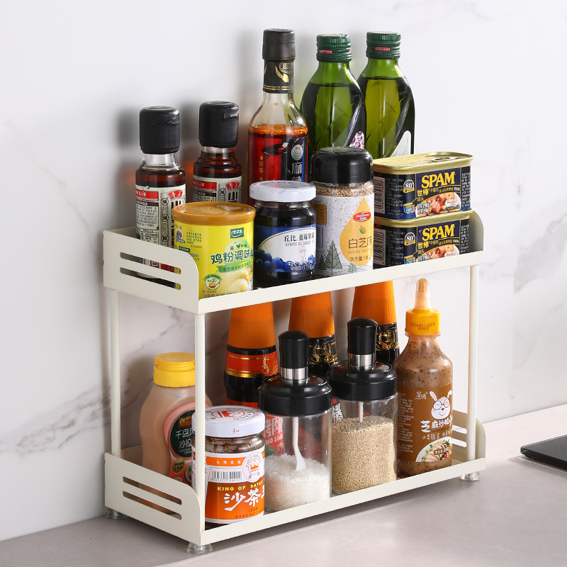 木製デスクトップ二重収納ラック鉄芸浴室家庭用多目的キッチンラック床置きテーブル調味料ラック