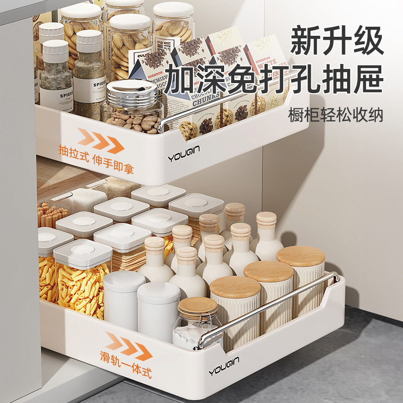 キッチン引き出し式物置棚下水槽バスケットキャビネット内蔵引き出し式超深調味料収納ケース神器