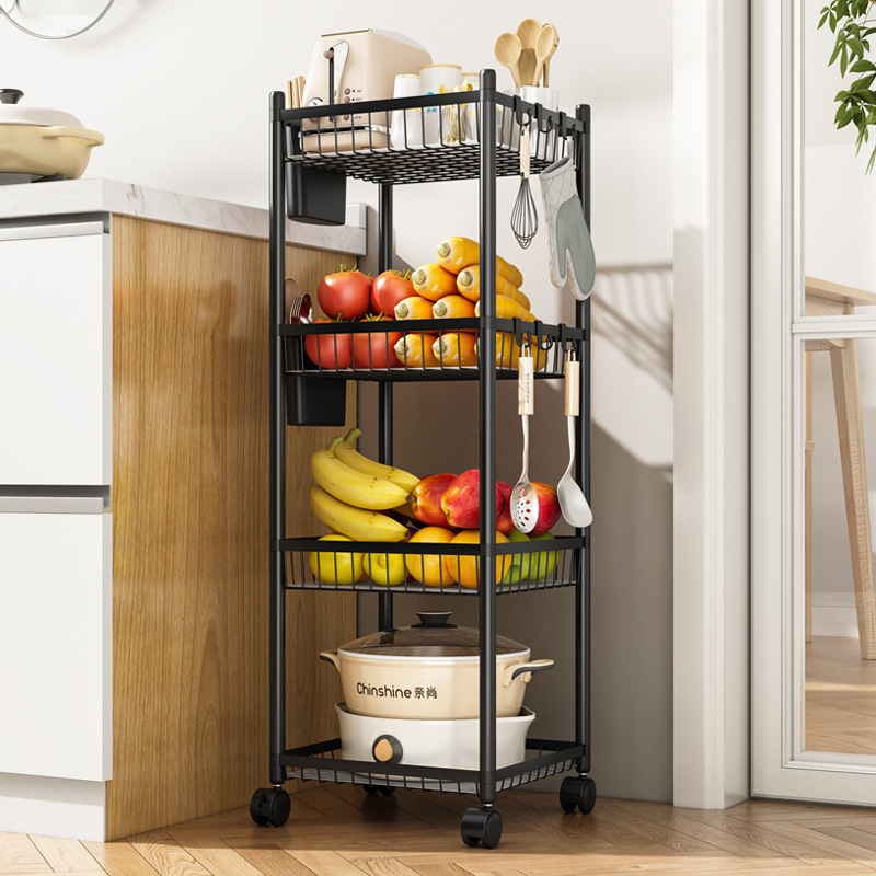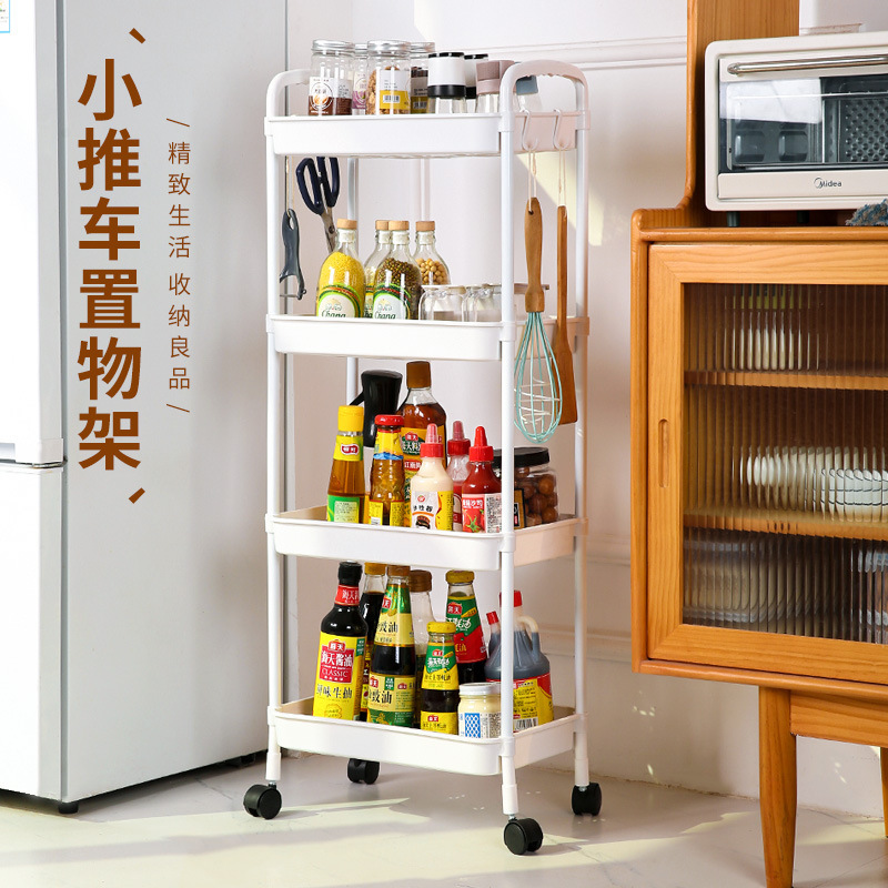 キッチン床置き式果物野菜棚狭いクリップ隙間移動四階カート家庭用収納棚
