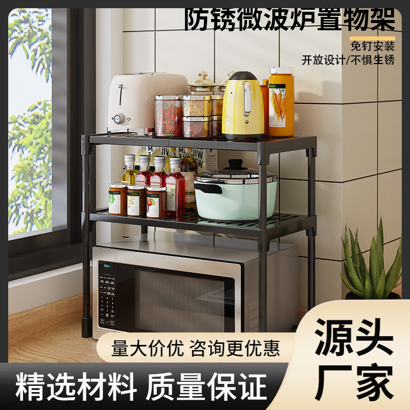 家庭用キッチン手すり付きフック棚調味料整理棚電子レンジ棚を広げてオーブントースターを厚くする