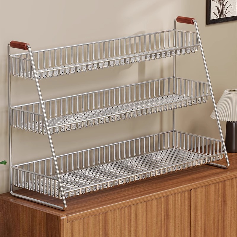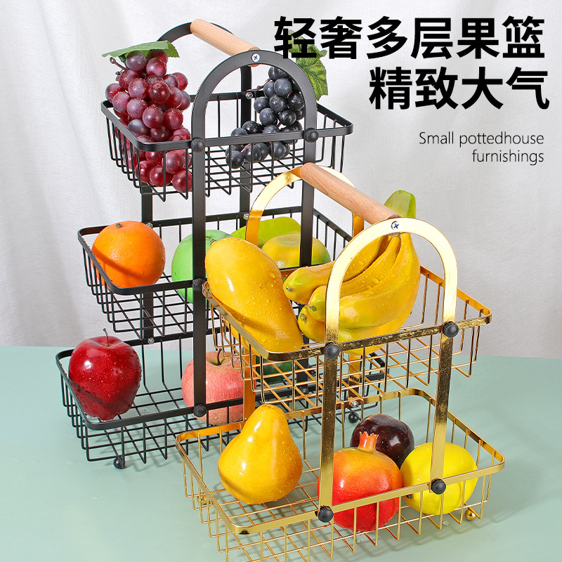 国境を越えた多層果物バスケットキッチン三層の網羅的なバスケットリビングルームのドライフルーツスナック収納バスケット棚