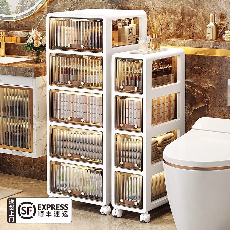 小挟み多層移動式収納棚カート寝室トイレ床置き棚床置きプーリー