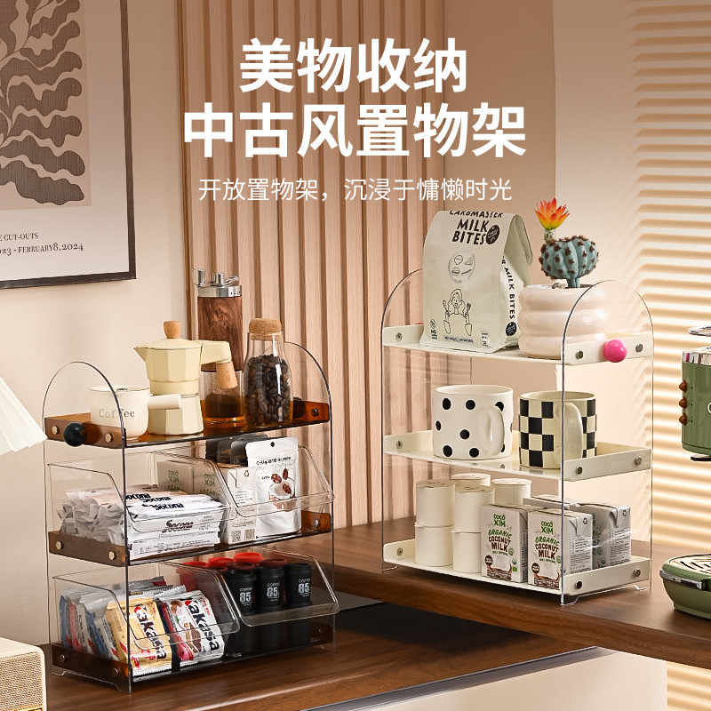 中世スタイルの収納ラックティーバッグコーヒー収納ボックスラックアクリル透明デスクトップ収納ボックス多層収納ラック