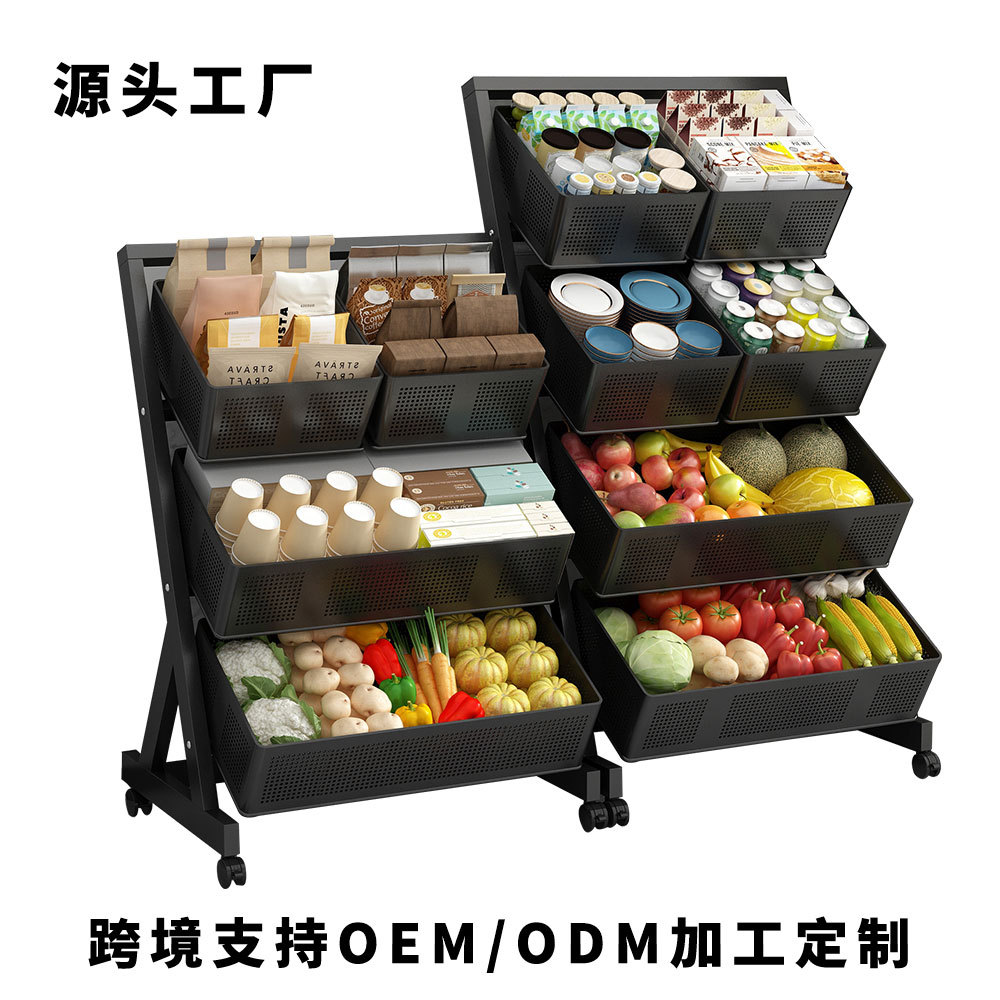 可動式スーパーマーケットの果物と野菜の棚工場多層収納ラックキッチン用品収納ラックサンドイッチスナック収納ラック