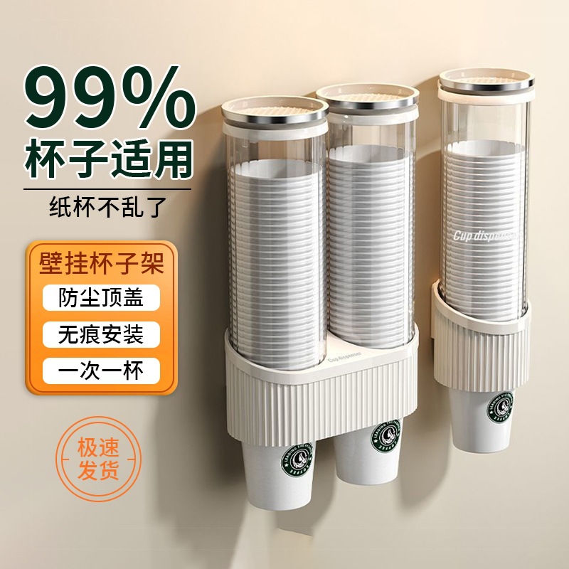 パンチフリー使い捨てカップリーダー自動ウォーターディスペンサーカップホルダー防塵収納ラック壁掛けカップ