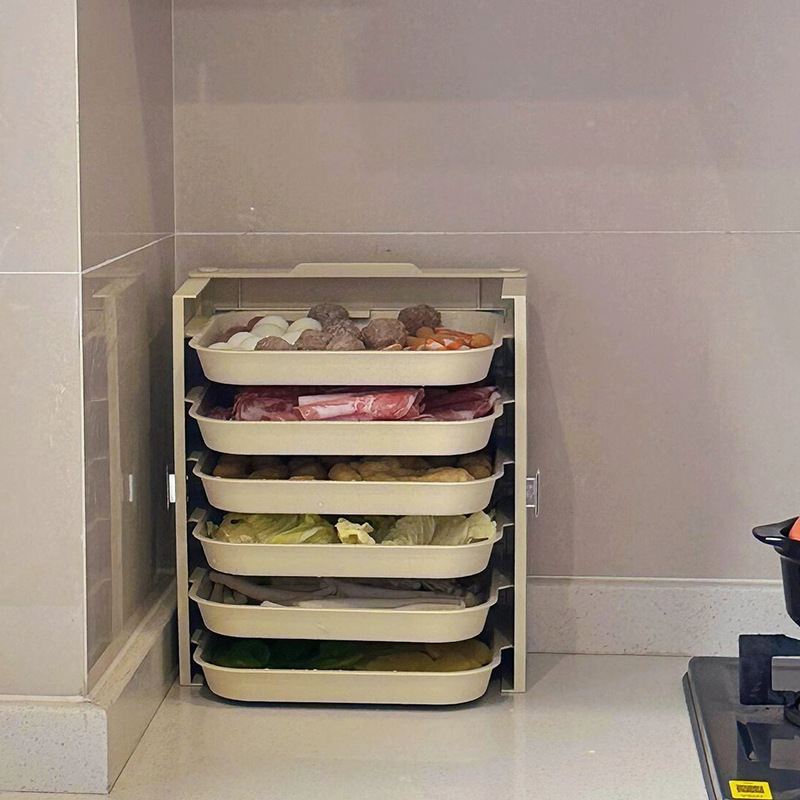 キッチン省スペース多機能食品準備トレイ収納ラック多層食品準備ボックス調理鍋家庭用食品準備ボックス