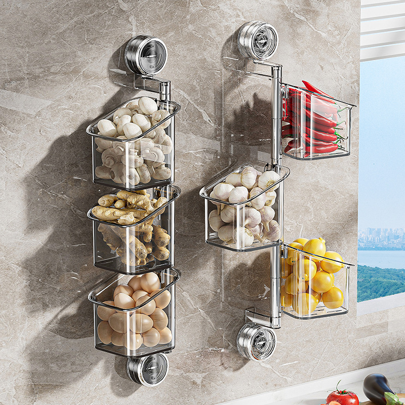 キッチン玉ねぎ、生姜、ニンニク収納ボックス、吸盤収納ラック、パンチフリー多層生姜とニンニク収納ハンギングバスケット