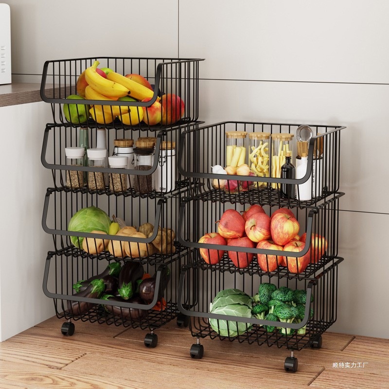 トロリー収納ラック野菜バスケットホームキッチン野菜と果物青野菜バスケット多層スナックモバイル収納ラック