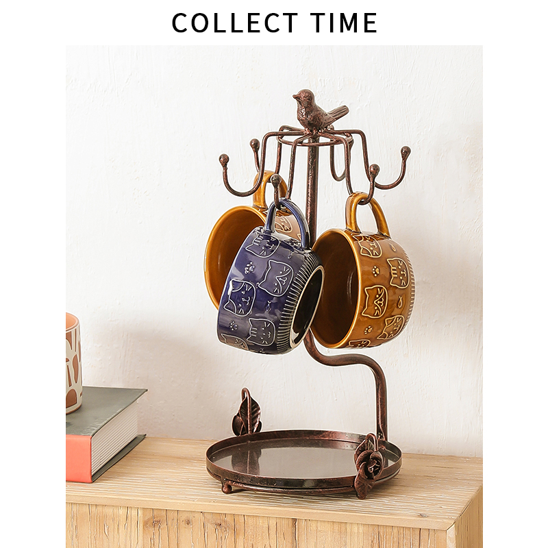 レトロな鉄カップラック家庭用ウォーターカップラック排水ラック収納コーヒーティーカップラックガラスカップラック