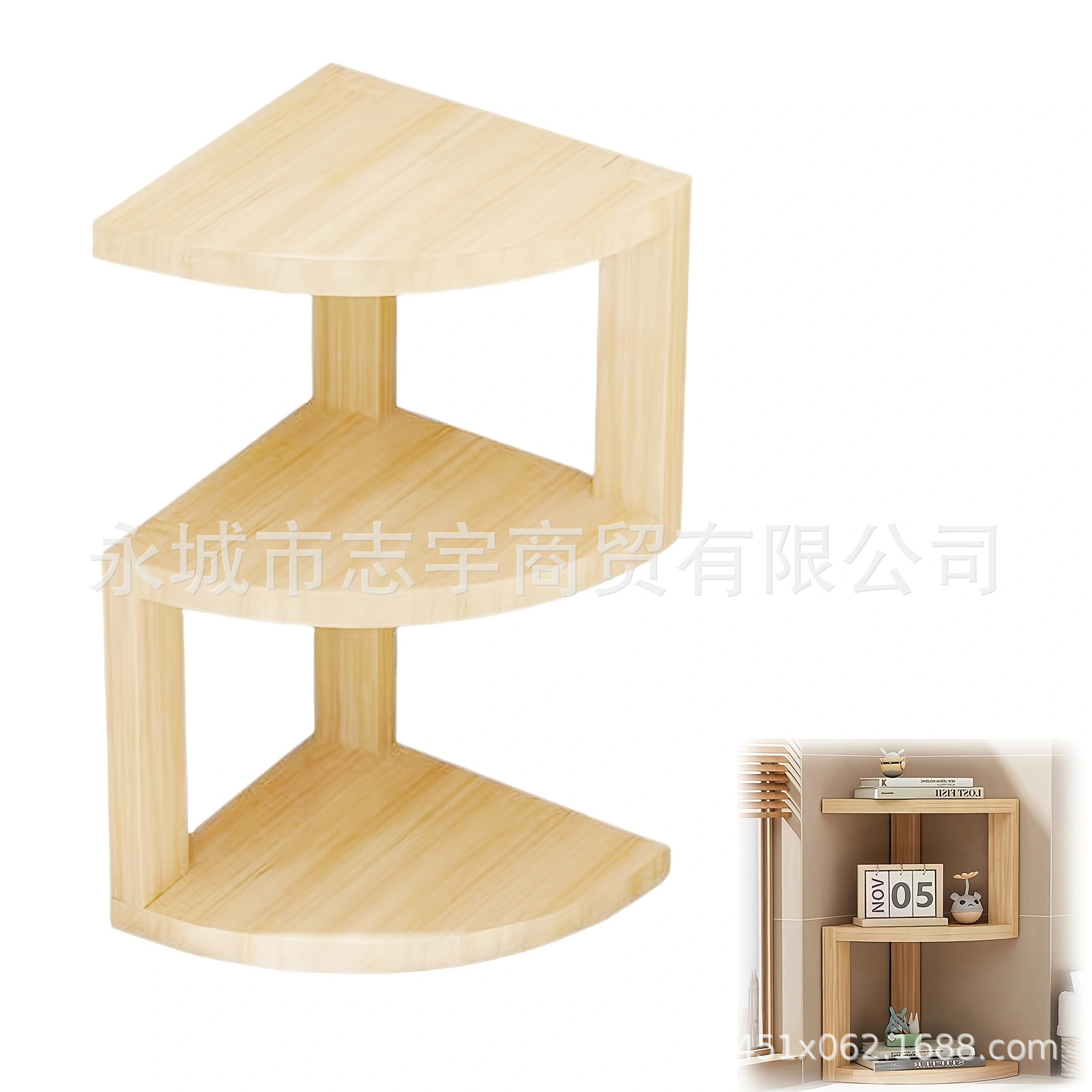 実木三層多層床置き棚家庭用収納ケースリビングキッチン竹木棚家庭用シンプル収納ケース