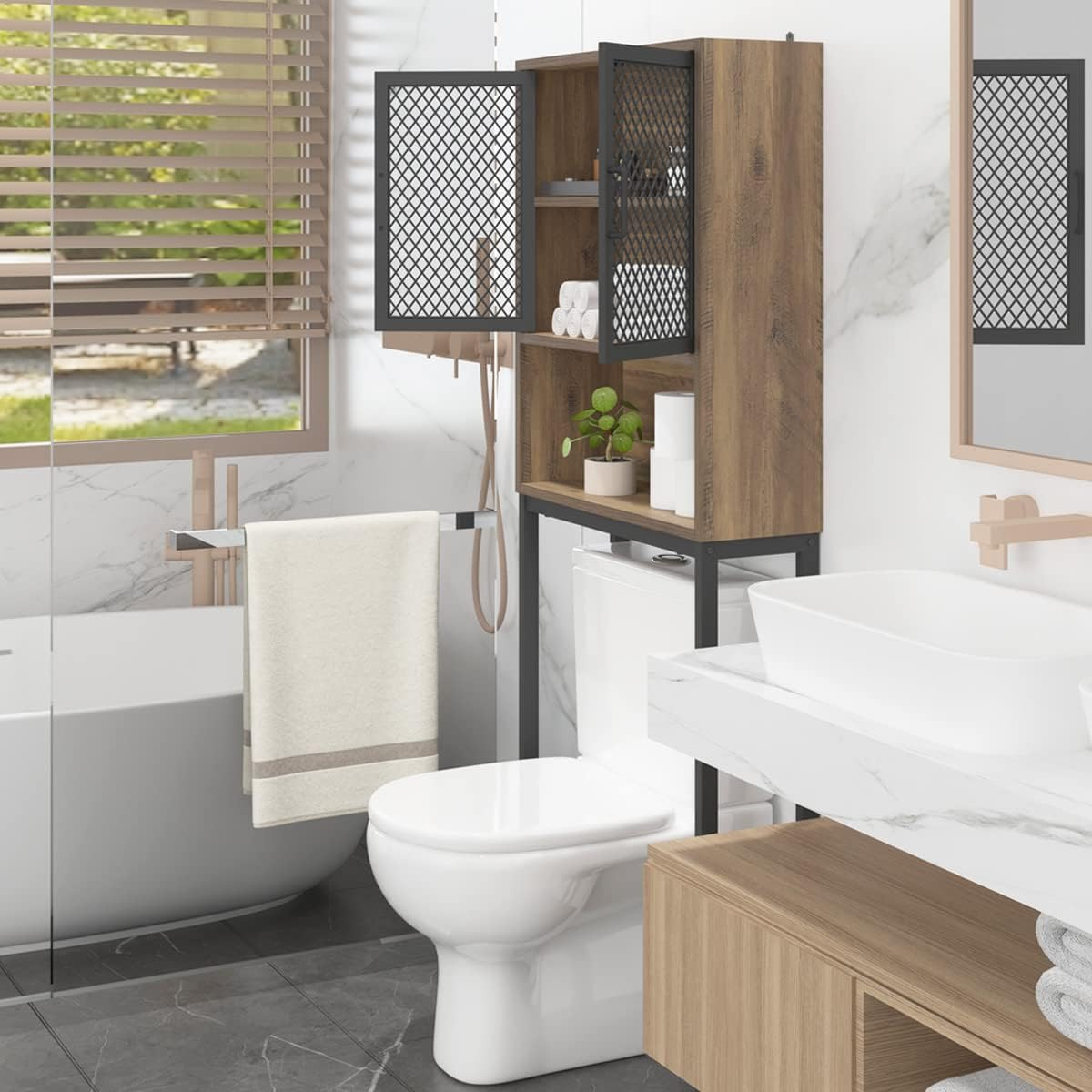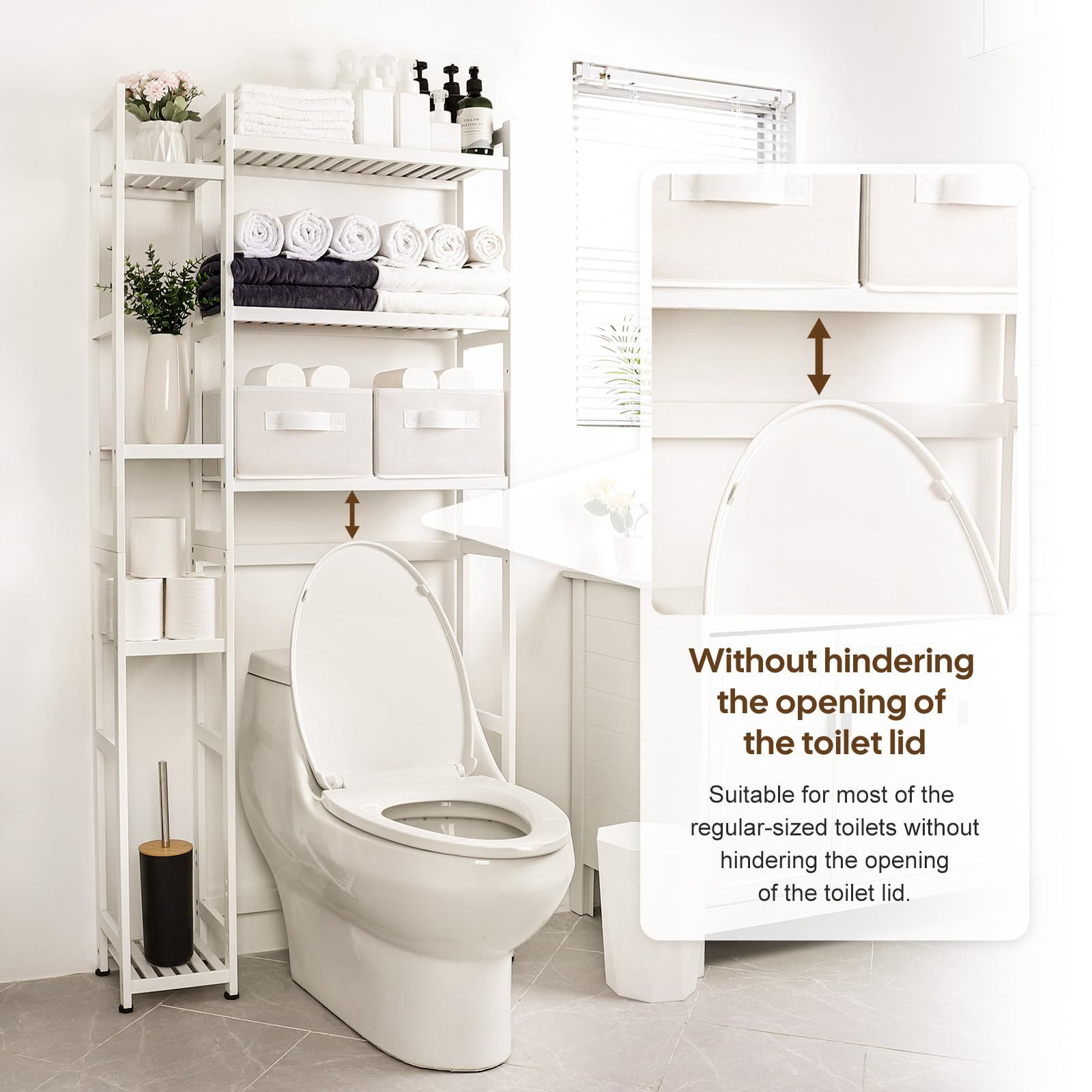 トイレの上に設置できる、穴あけ不要のバスルーム収納棚、トイレ用品収納棚、トイレ棚