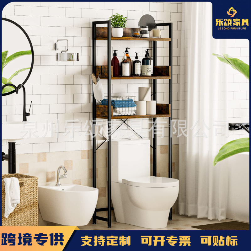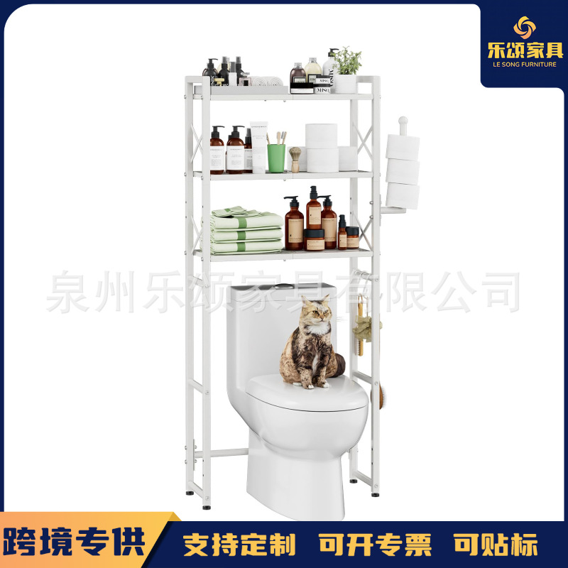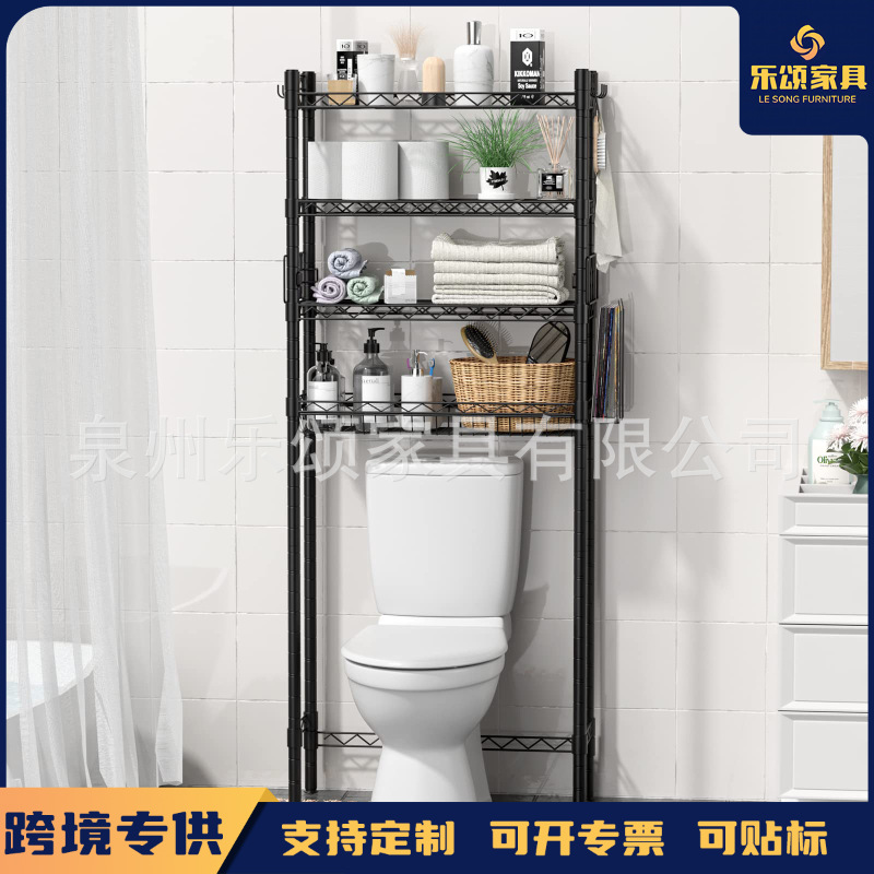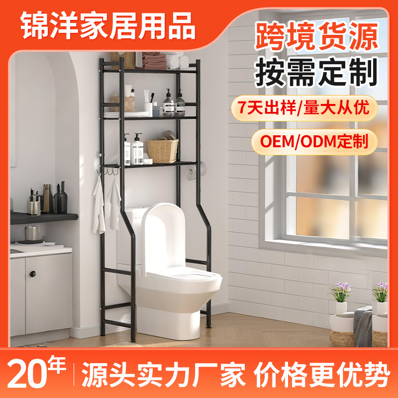 東南アジアで人気のトイレラック、トイレバスルームメタルフロア収納ラック、パンチフリー多層収納
