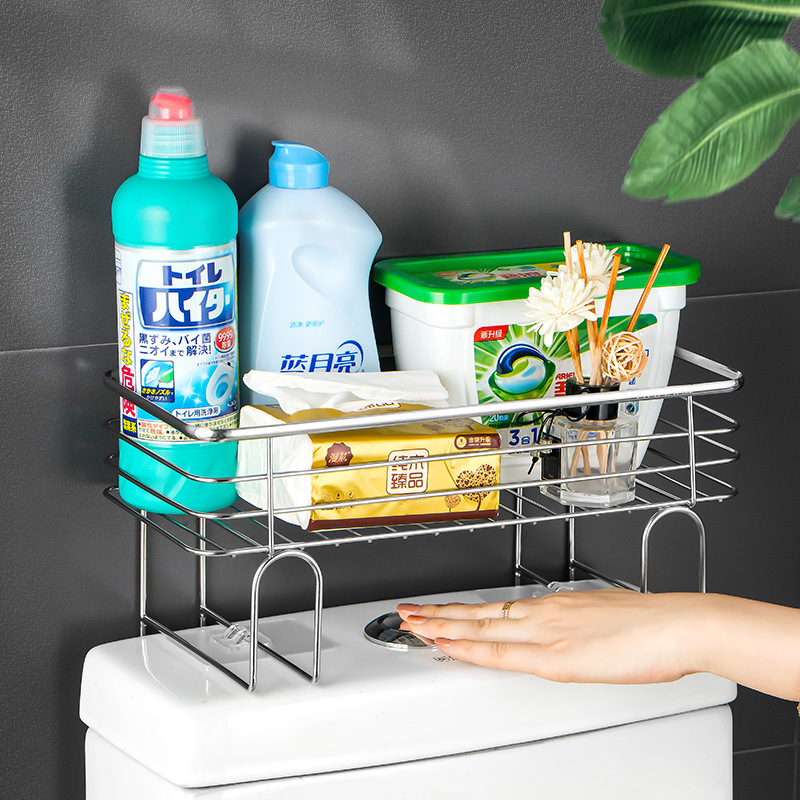 トイレ収納ラックの上に多機能パンチフリー304ステンレス鋼のバスルームトイレ水タンク収納ラック