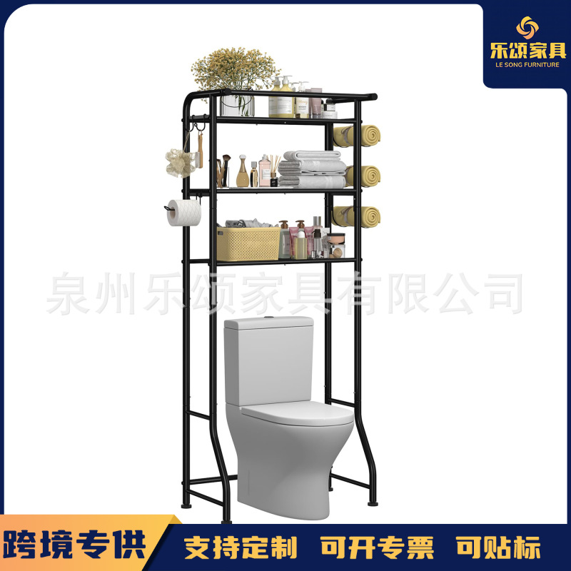 国境を越えた特別な3層トイレ上省スペース棚ユニットバスルーム収納ラックブラックメタルアーキテクチャ