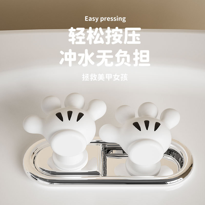ミッキーパームトイレプレス、かわいい長い爪、爪が折れにくいマニキュア、専用トイレフラッシング補助具