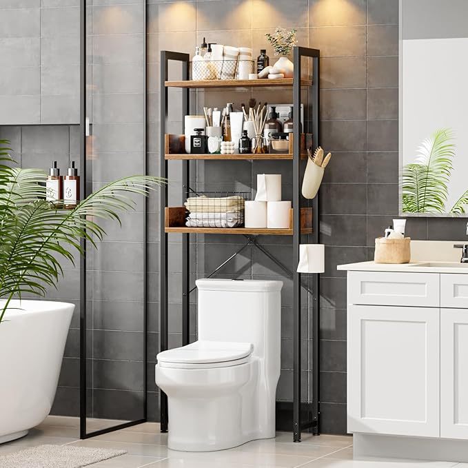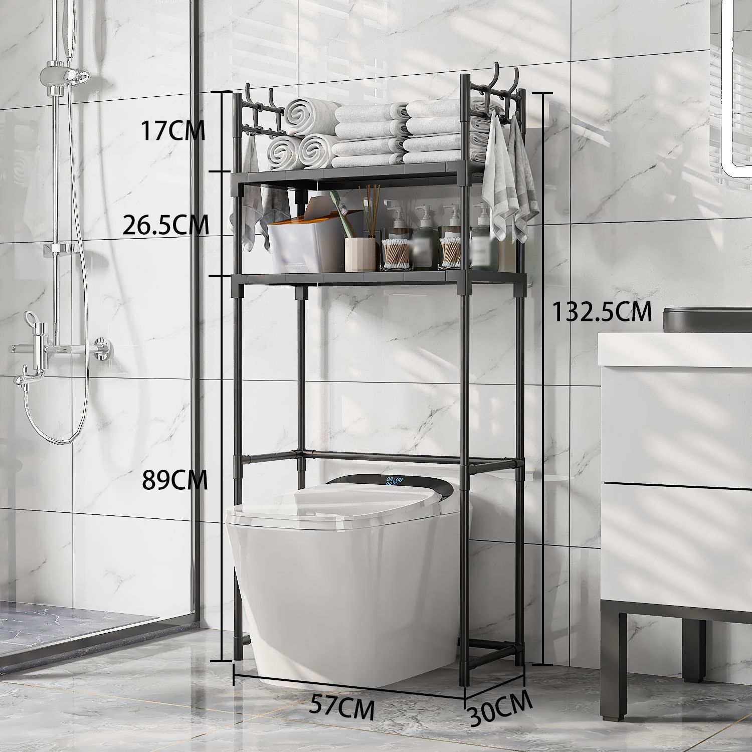 シンプルでスタイリッシュなトイレ上収納ラック トイレットペーパーホルダー付き 高耐久金属製三層バスルームオーガナイザー