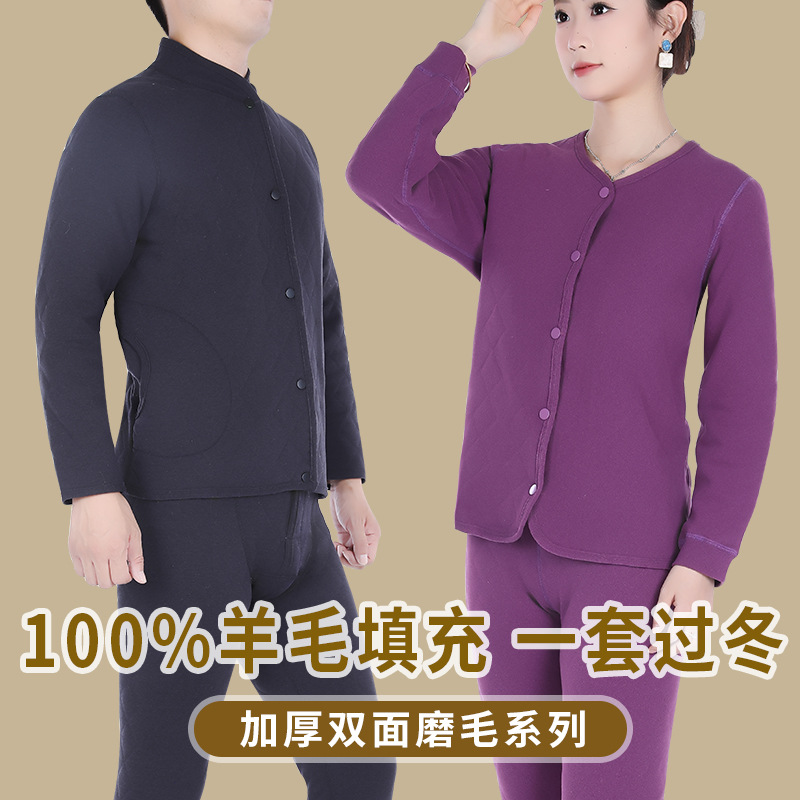 秋冬徳絨毛保温下着女性ベルベット厚手ウールシルク保温スーツ男性ABパン襟秋衣秋ズボン