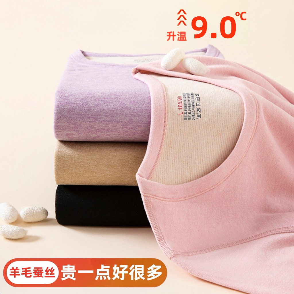 ウールシルク秋衣秋ズボンセット男女純色底保温セット秋冬糸ズボン