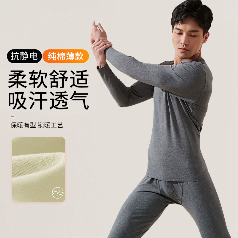 秋冬純綿保温下着秋衣男服セット薄手男性超薄ズボン底底シャツ男秋衣秋衣パジャマ
