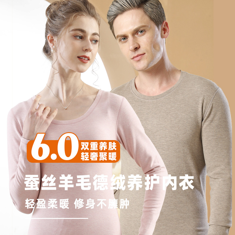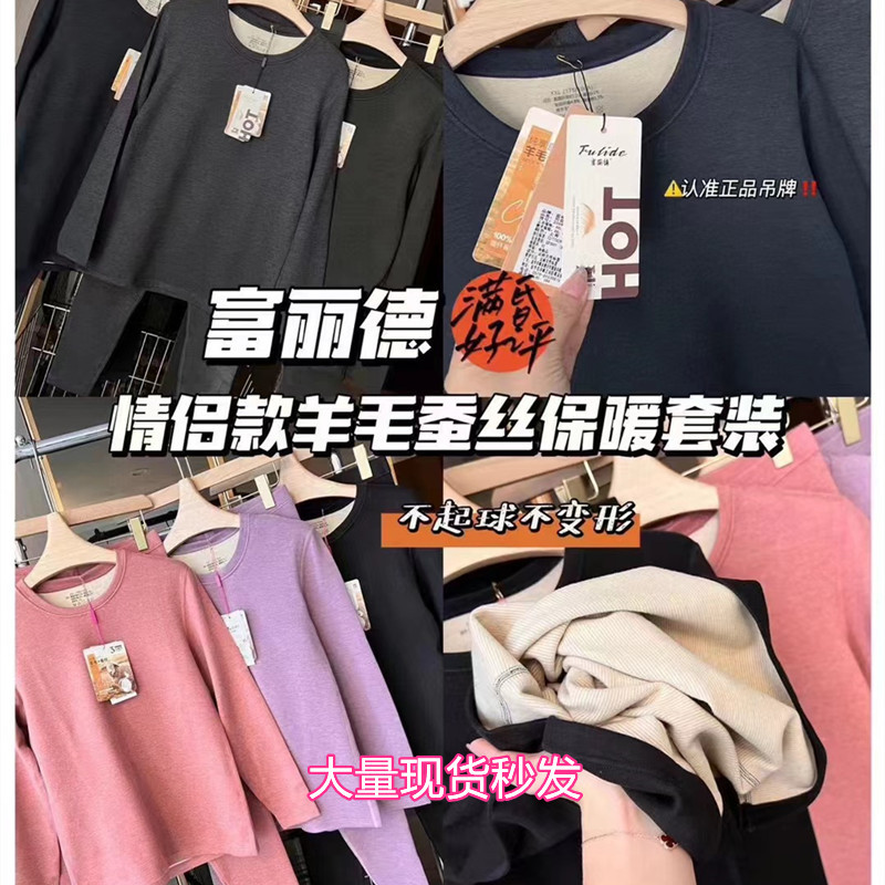 富丽徳ウールシルクカップル保温スーツ男女タイプの下着両面磨毛耐寒スーツ男女