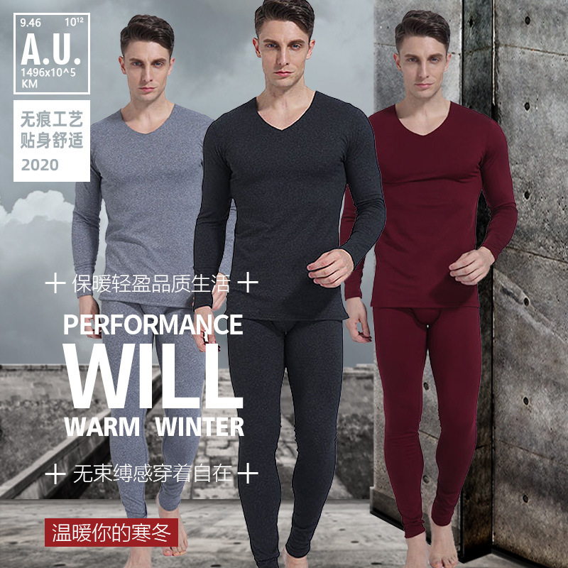 2023秋冬の新型の厚いベルベットの徳無痕保温下着男性スーツvネックの下の秋のズボン