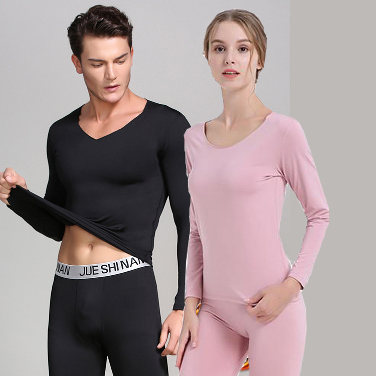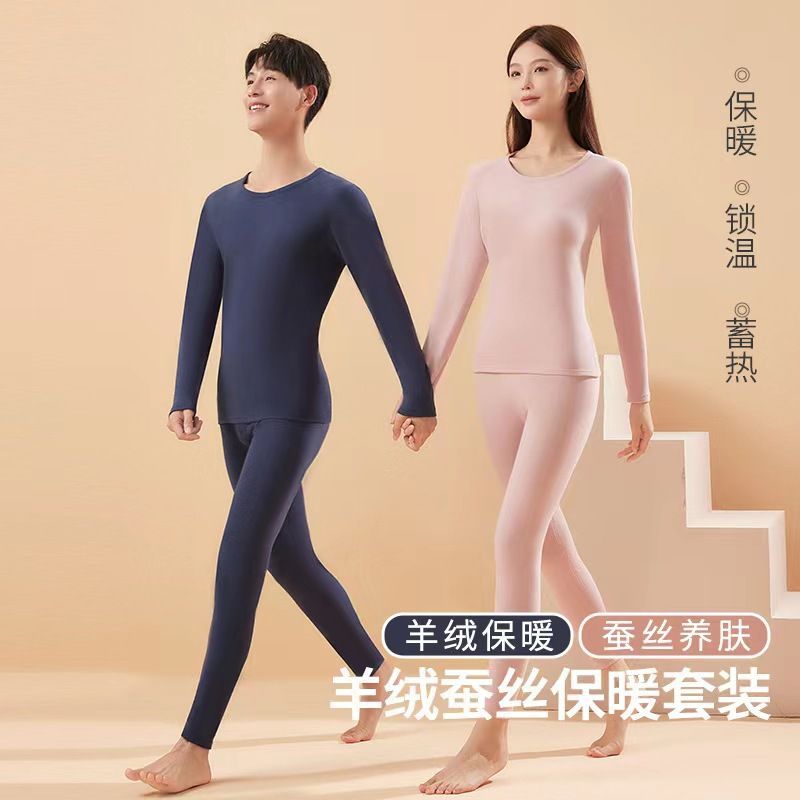 ウールシルク徳パイル無痕保温下着女性セット発熱ベルベット厚手秋衣秋ズボン男性冬