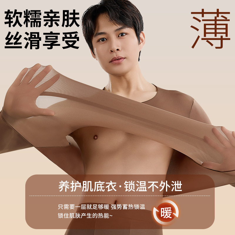 秋冬新作男性美肌服セット超薄高弾長袖保温下着静電気防止無痕発熱底