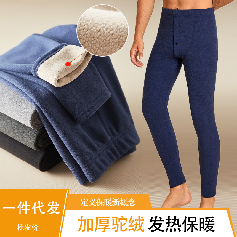 メーカー卸売り新型400g冬男性ベルベット厚手レギンス七彩綿一体ズボンシームレス保温ズボン